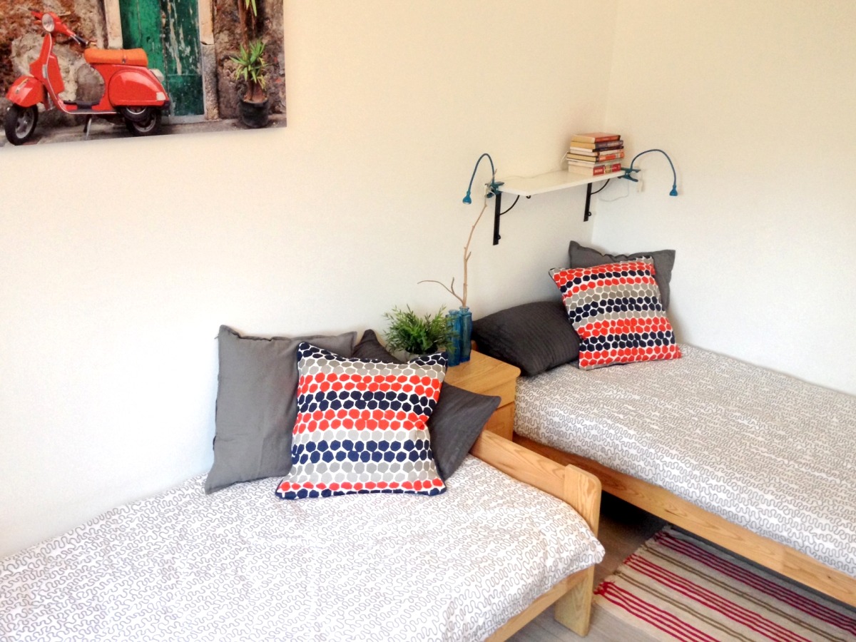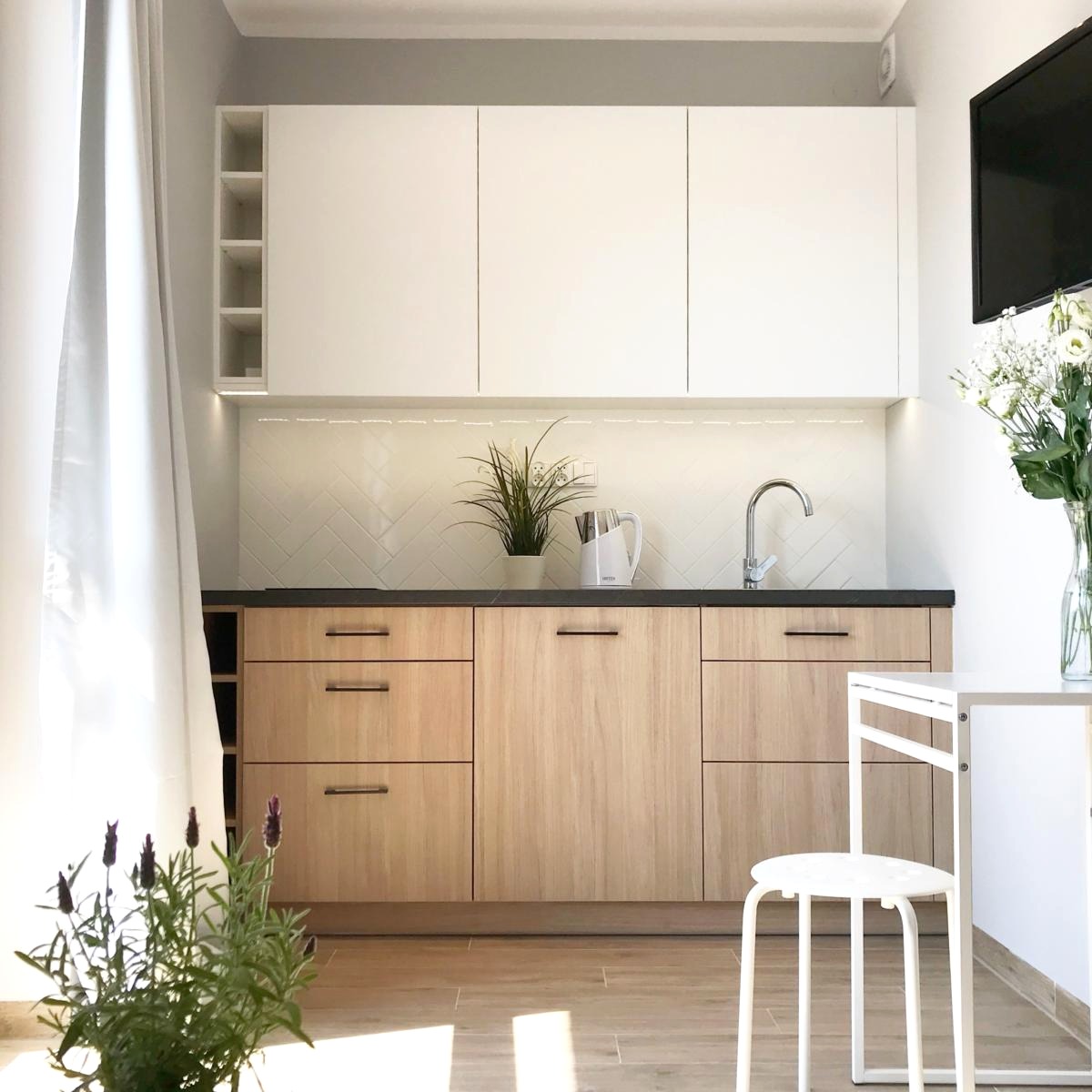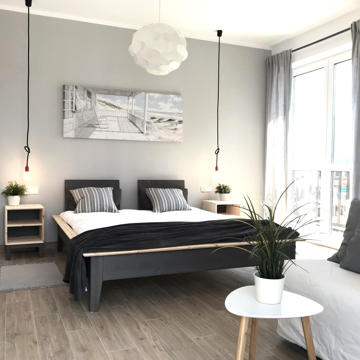 Największy apartament w ofercie. Ma sypialnię oraz salon z aneksem kuchennym. W salonie znajduje się szeroka kanapa rozkładana, a z sypialni wychodzi się na spory balkon od strony południowej.